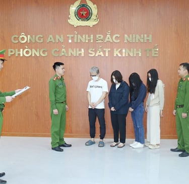 Theo đó các bị can gồm: Diêm Thị Linh, sinh năm 1992, trú tại phường Võ Cường, Chu Quý Đông, sinh năm 1995, trú tại phường Kinh Bắc, Phan Thị Ngọc Phượng, sinh năm 1995 và Phan Thị Hà, sinh năm 1993, cùng trú tại phường Vũ Ninh, tỉnh Bắc Ninh.